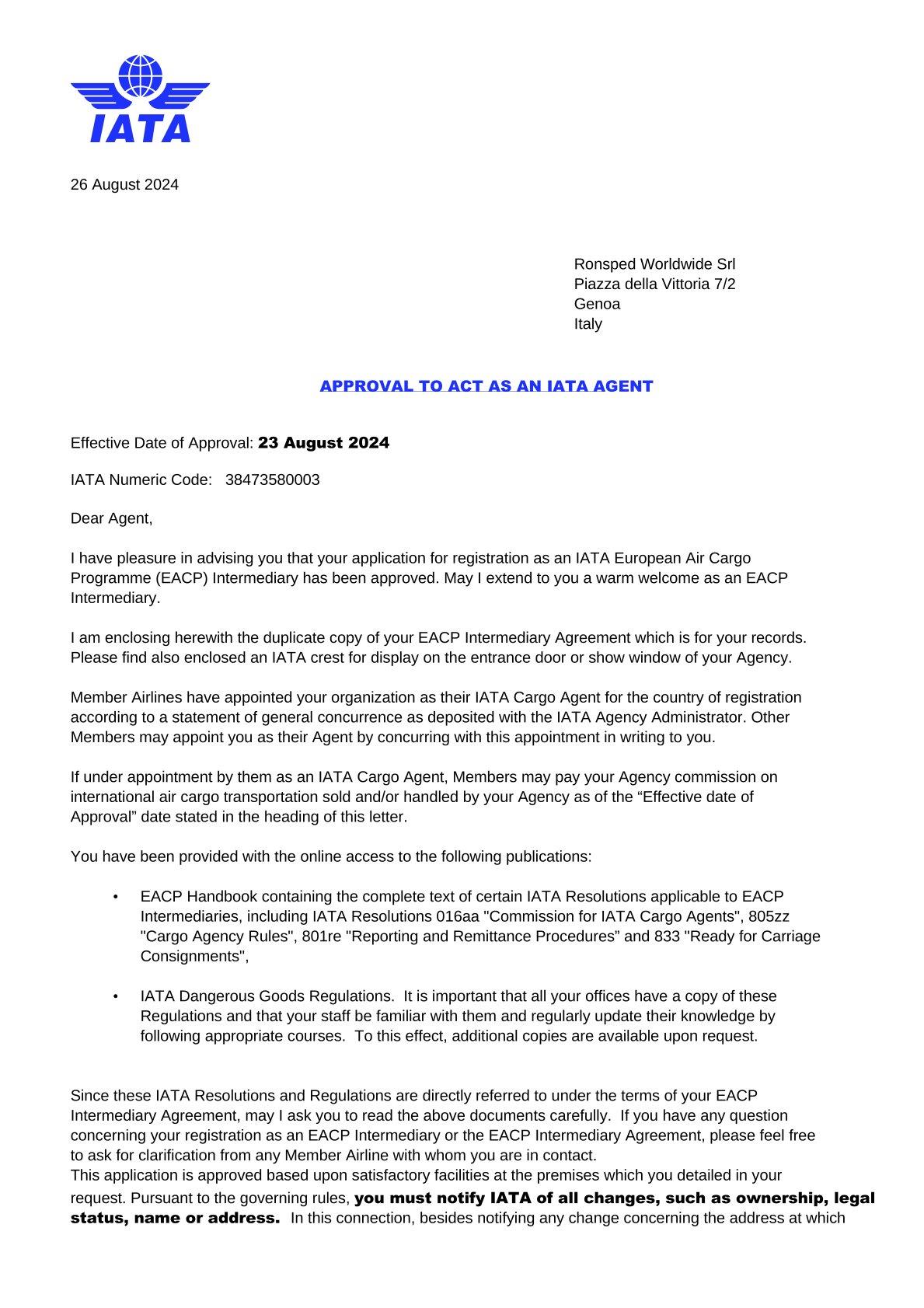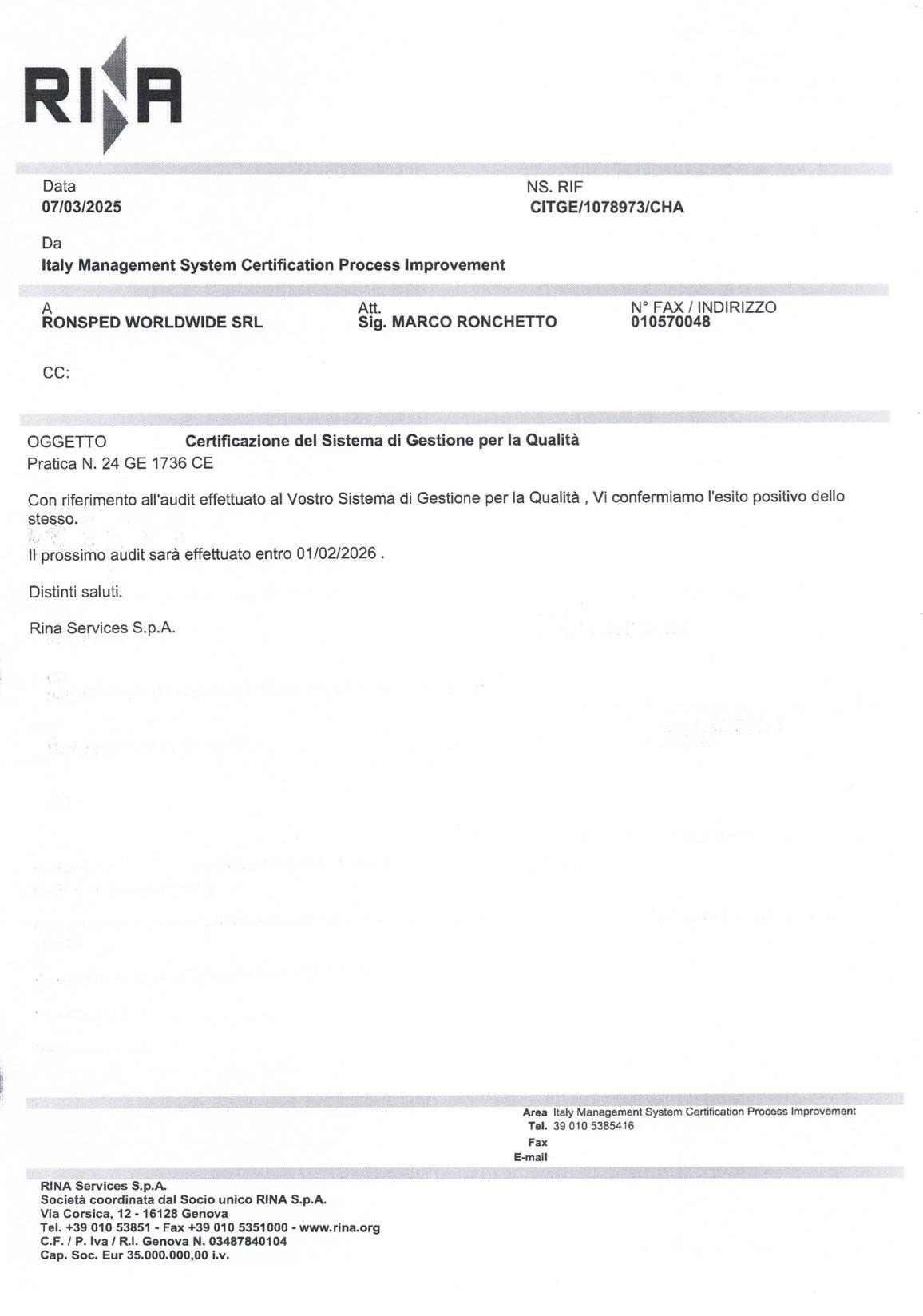 Ronsped Worldwide srl truly represents the history of shipping. The Ronchetto family has been operating for over 90 years in the port city of Genoa.Over the years, RonSped has kept pace with the evolution of the world of shipping satisfying the increasing demands of it's customers. These new challenges have led the company to combine professionalism with new technologies, in order to offer reliable, fast and efficient international services.