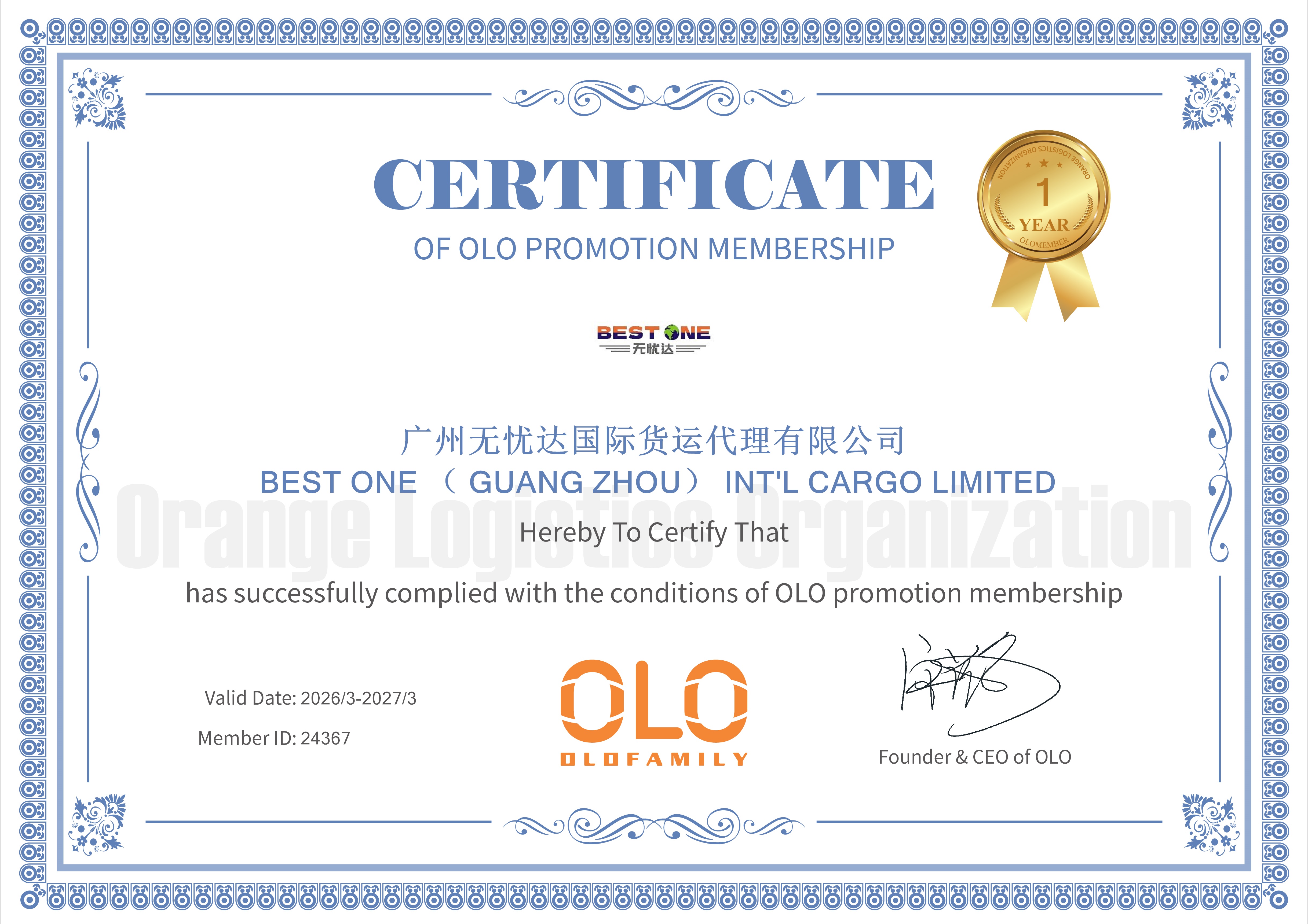 BEST ONE ( GUANG ZHOU) INT'L CARGO LIMITED is a comprehensive logistics company specializing in international dangerous & general goods logistics services. The company is headquartered in Yuexiu District, Guangzhou, and oversees Guangdong Best One Logistics Supply Chain Co.,Ltd. and TOP-Z INTERNATIONAL SUPPLY CHAIN MANAGEMENT